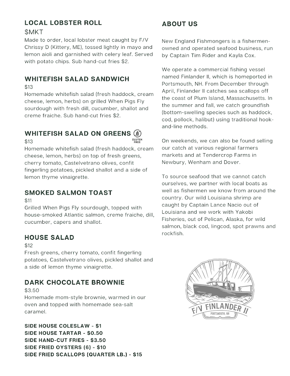 Welcome to New England Fishmongers, a hidden gem situated at 57 State Rd in Kittery, Maine. For seafood enthusiasts and lovers of authentic New England fare, this quaint establishment offers a delightful culinary experience steeped in tradition, freshness, and quality. With a menu that celebrates the bounty of the sea, New England Fishmongers promises to take your taste buds on a memorable journey.